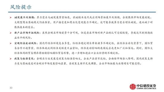 新产品市场开拓风险:虽然金刚石市场前景十分可观,但是存在市场对新产品的认可过程较慢,导致达不到预期收益水平的风险。