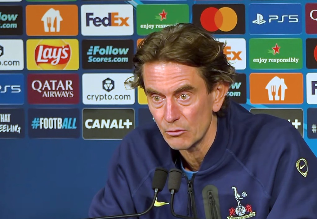 欧冠联赛阶段第5轮,热刺将客场对阵巴黎圣日耳曼,赛前,热刺主帅托马斯-弗兰克出席新闻发布会接受媒体提问。